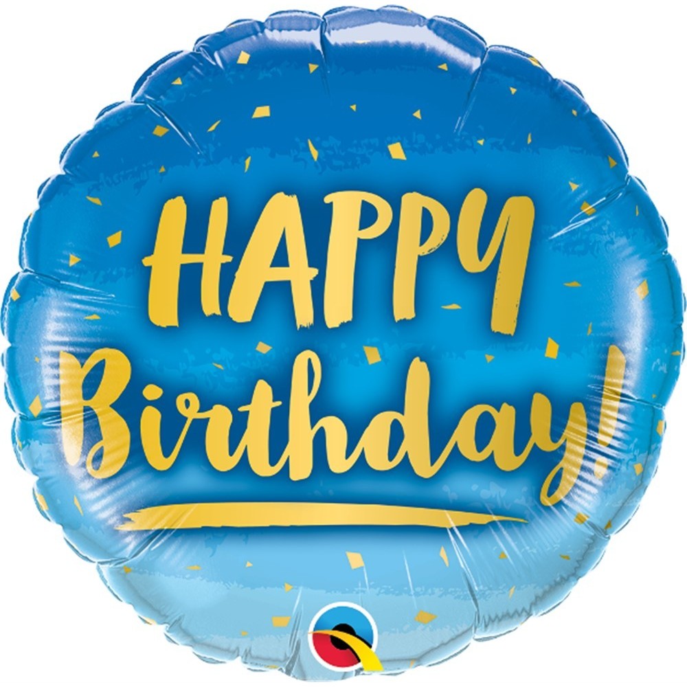 GLOBO QUALATEX #18C HAPPY BIRTHDAY ORO Y AZUL