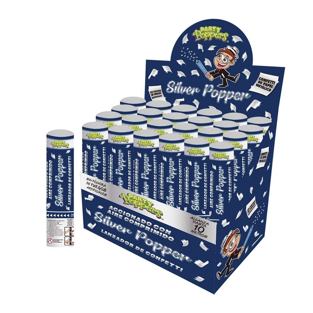 PARTY POPPER 20CM SILVER EURO --