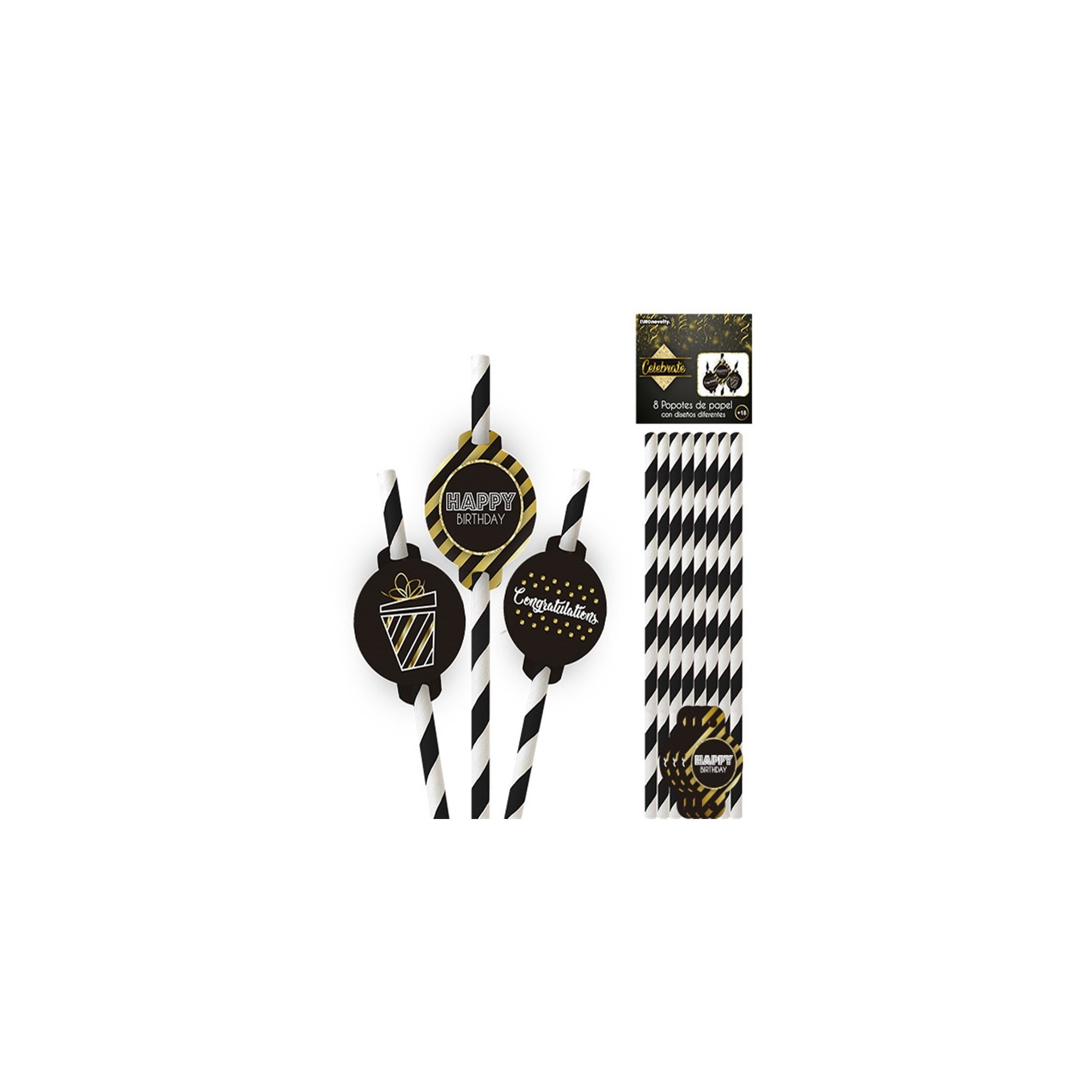 POPOTES DE PAPEL NEGRO/BLANCO CELEBRATE C/12 EURO