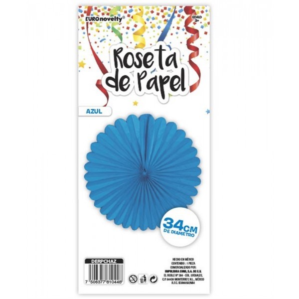 ROSETA DE PAPEL 34CM AZUL EURO