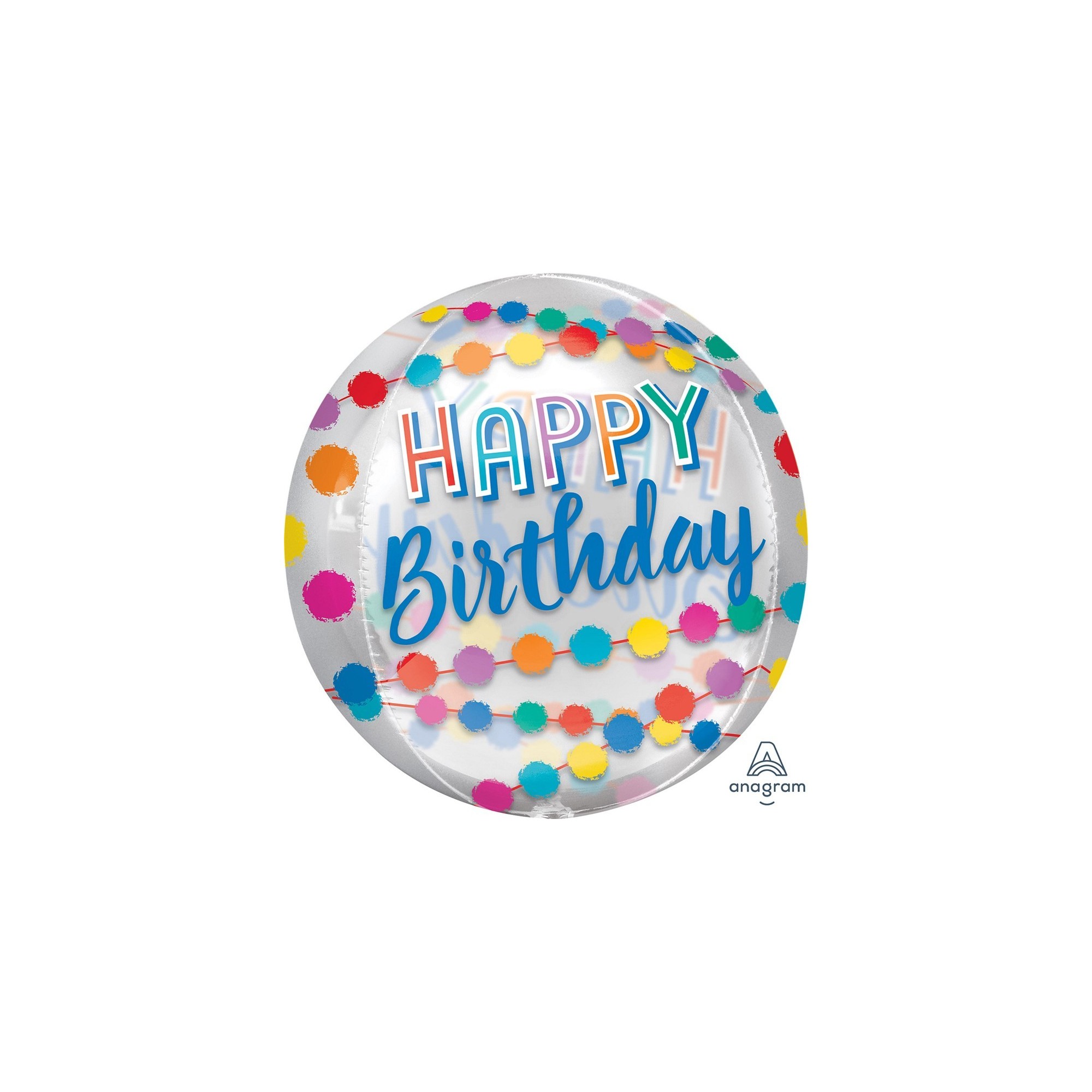 GLOBO CONVER ESFERA ORBZ HAPPY BIRTHDAY RAINBOW PUFFS TRANSP