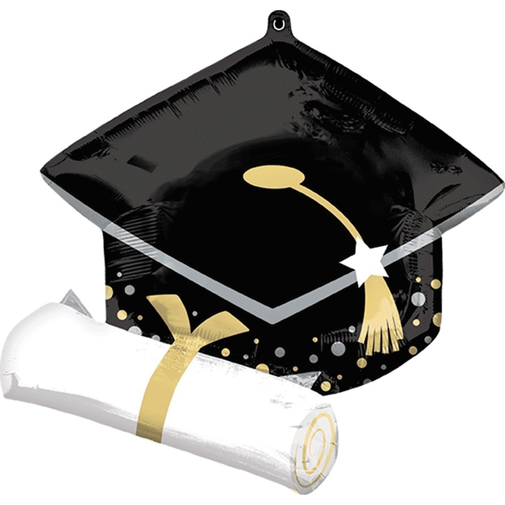GLOBO CONVER SPRSHP BLACK GRAD CAP & WHITE DIPLOMA