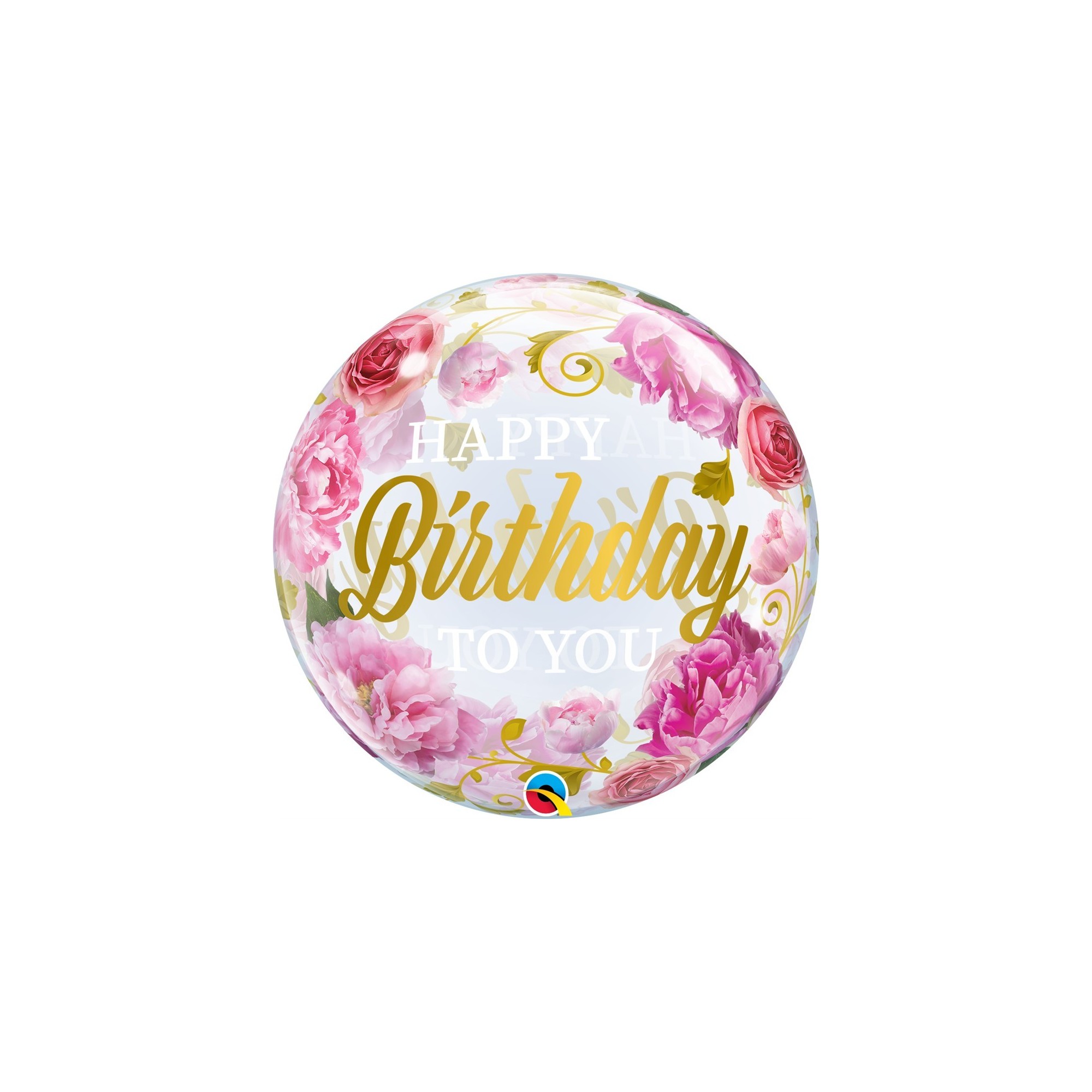 GLOBO QUALATEX BURBUJA #22 BIRTHDAY TO YOU PINK PEONLES