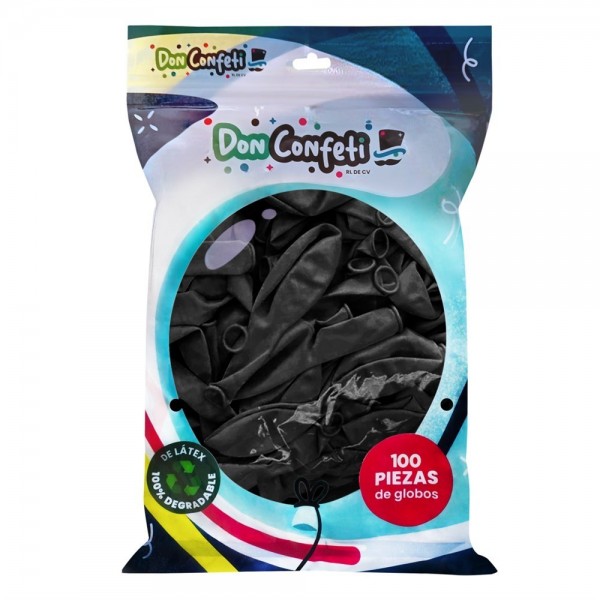 GLOBO DON CONFETI #12 ESTANDAR BLACK C/100 --