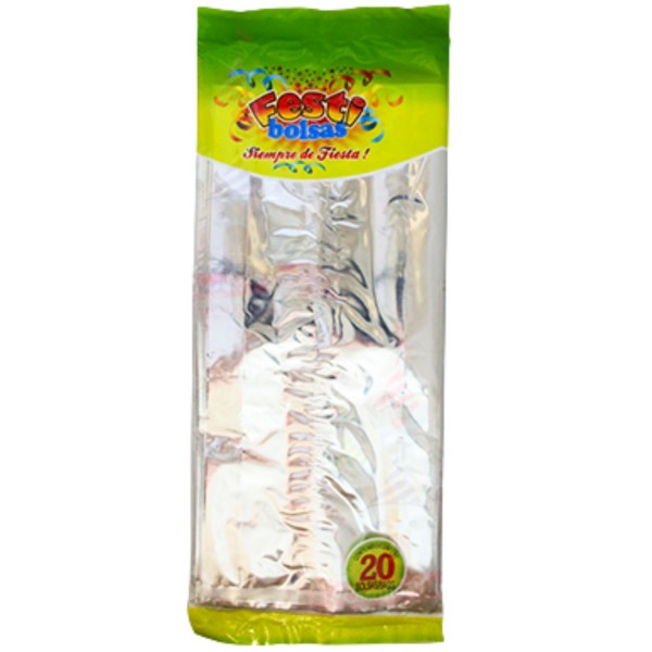 BOLSA METALIZADA SOLIDO PLATA GRANDE C/20 FESTIBOLSAS --