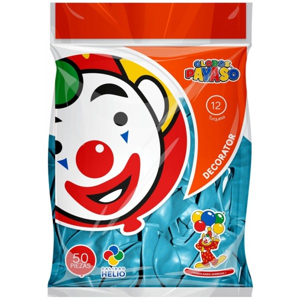 GLOBO PAYASO #12 DECOR TURQUESA C/50 --