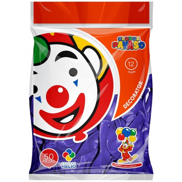 GLOBO PAYASO #12 DECOR VIOLETA C/50 --