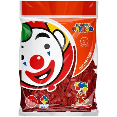 GLOBO PAYASO #5 DECOR ROJO CEREZA C/100 --