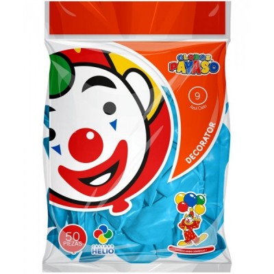 GLOBO PAYASO #9 DECOR AZUL CIELO C/50 --