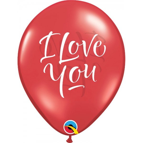 GLOBO QUALATEX #11 ESTAMPADO I LOVE YOU ESCRITURA MODERNA ROJO RUBI 10PZ