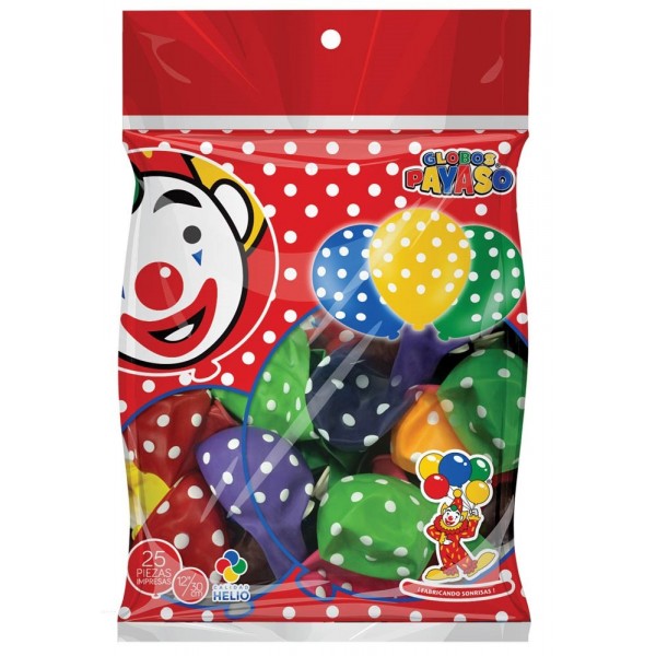 GLOBO PAYASO #12 IMPRESO POLKA DOTS SURTIDO C/25 --
